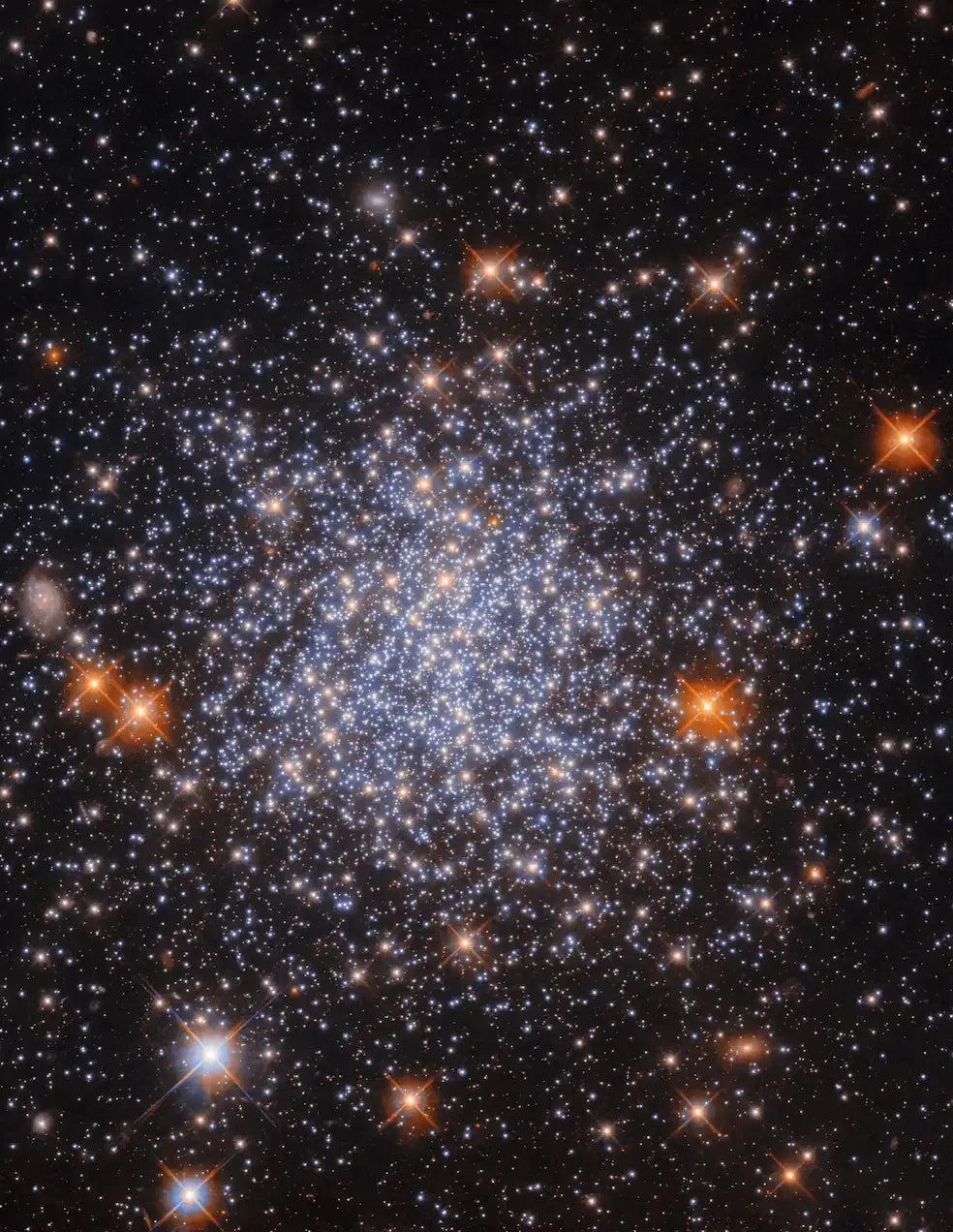 Was John Herschel um 1835 als Nebelfleck wahrnahm, sollte sich später als kugelförmiger Sternhaufen entpuppen, den heute die Kataloge unter der Bezeichnung NGC 1651 führen. John Herschel, Sohn des Uranusentdeckers Wilhelm Herschel, hatte während seines fünfjährigen Aufenthalts in Kapstadt den gesamten Südhimmel durchmustert und tausende von Objekten in seiner Privatsternwarte kartiert. Dabei gelang Herschel der Nachweis, dass die beiden Magellanschen Wolken tatsächlich aus Myriaden von Einzelsternen bestehen. In der größeren „Wolke“, einer unmittelbar zu unserer Milchstraße benachbarten Galaxie, findet sich der abgebildete Kugelsternhaufen. Sein Durchmesser beträgt 120 Lichtjahre, eine kosmisch gesehen geringe Strecke, die dennoch nach menschlichen Maßstäben unendlich scheint und zu Zahlenspielereien herausfordert. Das schnellste Raumfahrzeug, die Sonnensonde Parker, erreichte im Herbst 2023 die sagenhafte Geschwindigkeit von 650.000 Stundenkilometer. Und dennoch hätte sie erst nach 200.000 Jahren den Kugelsternhaufen durchquert. -
